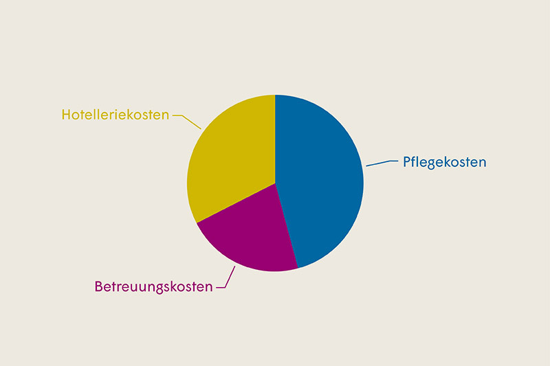 Die Heimkosten setzen sich in der Schweiz generell aus Hotellerie-, Betreuungs- und Pflegekosten zusammen.