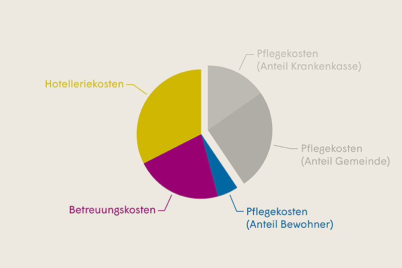 Die Bewohnenden übernehmen die Hotellerie- und Betreuungskosten sowie den Eigenanteil der Pflegekosten.